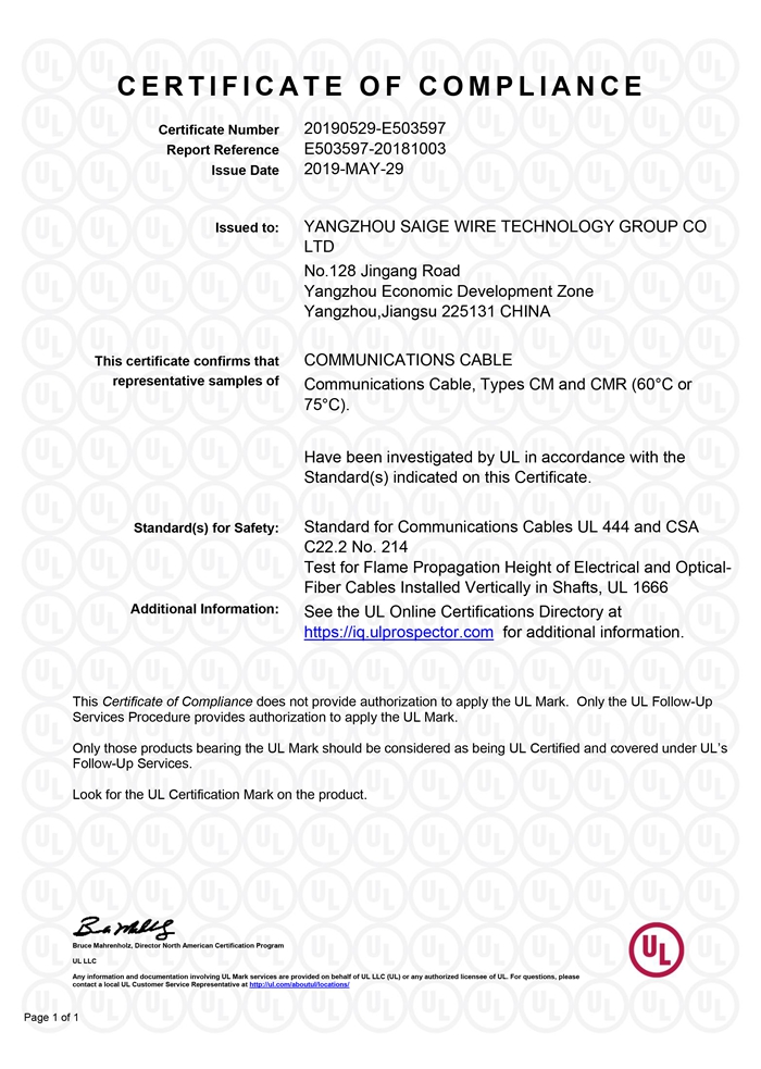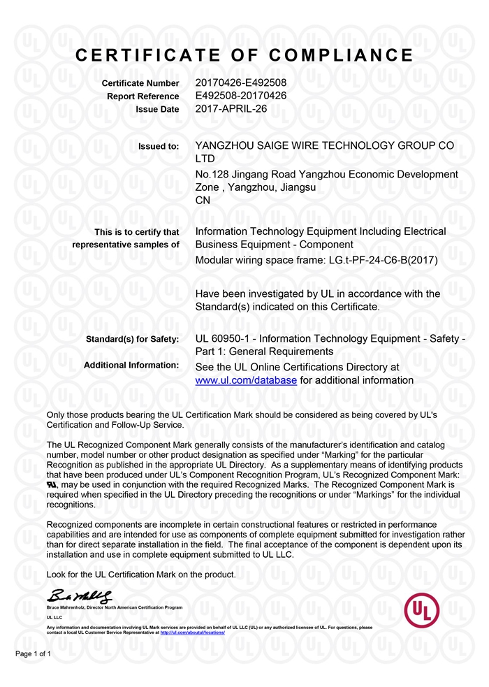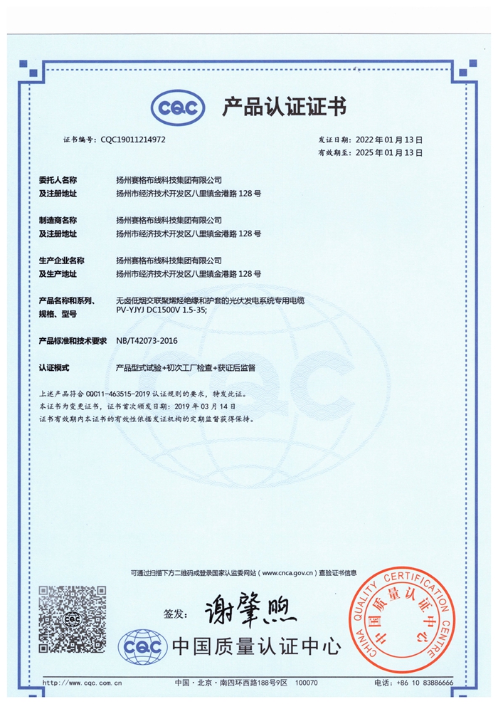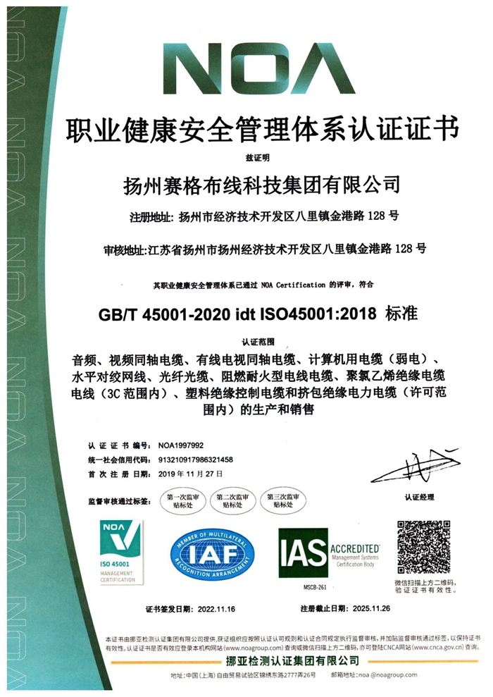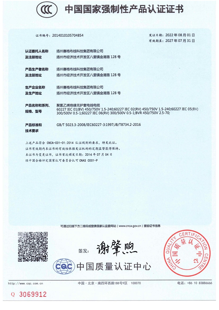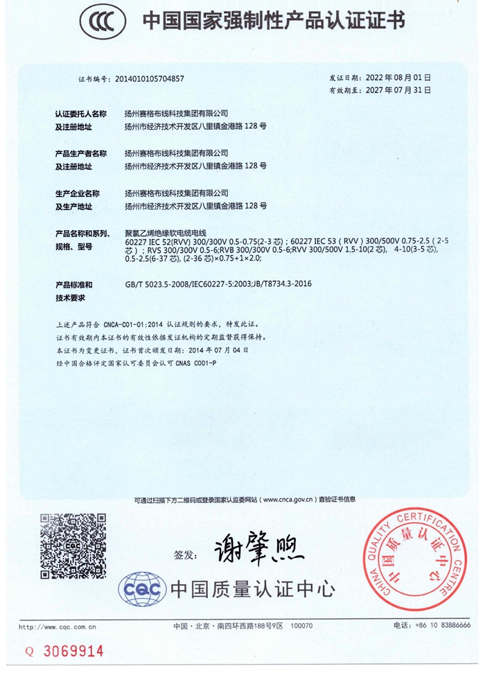 “賽格集團”位于美麗的揚州,公司占地面積106800平方米,固定資產(chǎn)20000萬(wàn)元,職工近千人,其中各類(lèi)專(zhuān)業(yè)技術(shù)人員過(guò)百人,系中國安全防范產(chǎn)品行業(yè)協(xié)會(huì )理事單位。公司擁有各種先進(jìn)的綜合布線(xiàn)產(chǎn)品及線(xiàn)纜制造和實(shí)驗檢測設備,產(chǎn)品嚴格按照國家標準或行業(yè)標準組織生產(chǎn),并已獲得國家質(zhì)量認證中心CQC頒發(fā)的CCC證書(shū)和上海挪亞檢測認證集團有限公司頒發(fā)的ISO9001:2015證書(shū),泰爾認證中心頒發(fā)的“泰爾認證”等!